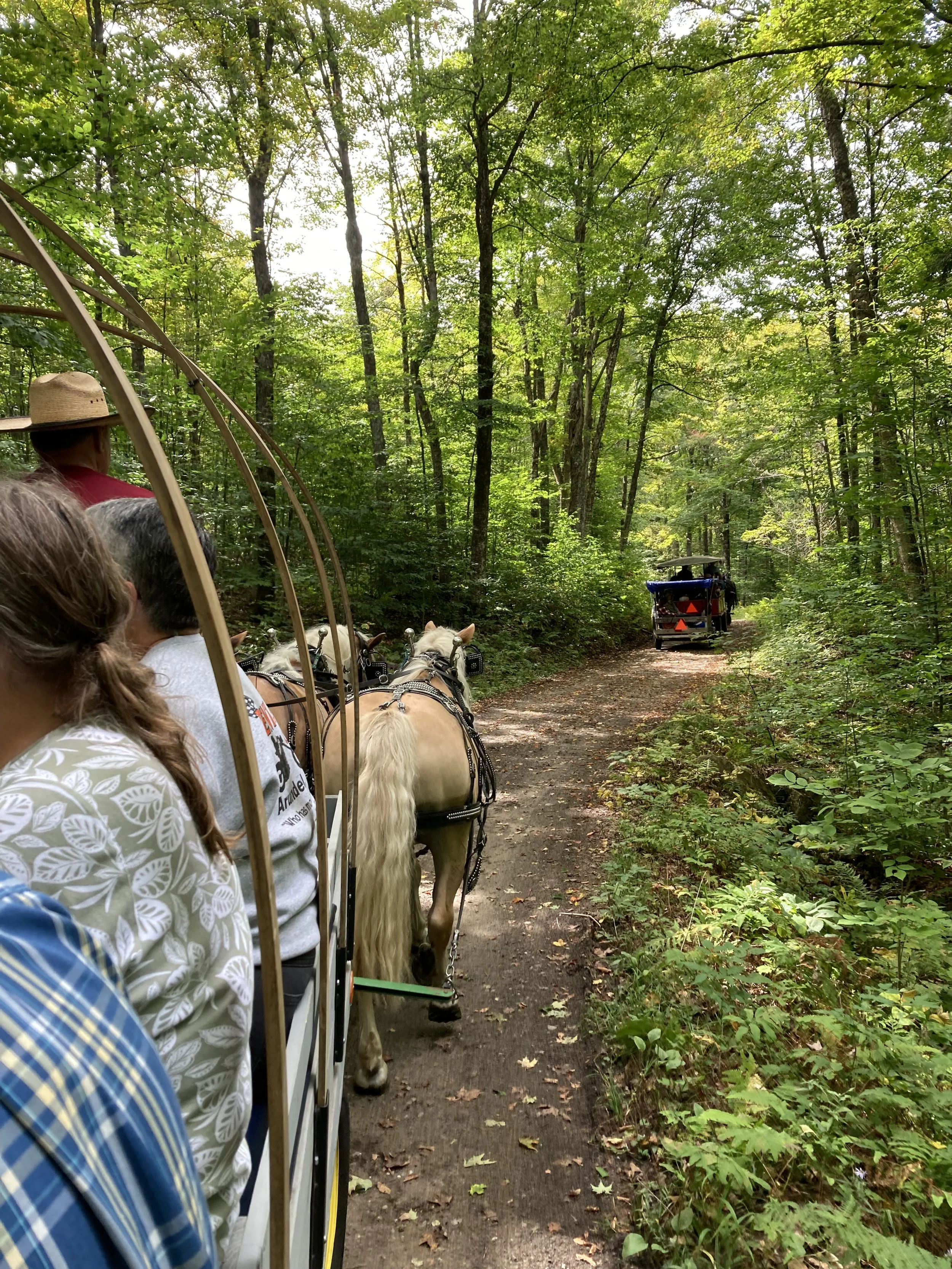 Access to Great Camp Santanoni is available by horse-drawn wagon for a per-person fee during the summer season.